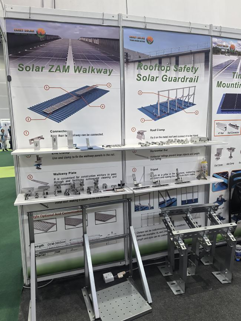 ລູກຄ້າຫຼາຍຄົນໃນງານວາງສະແດງນີ້ໄດ້ຮັບຄວາມນິຍົມຄາເຟືອຍກາກບອນເຫຼັກ. ທັງສອງcarports ດຽວແລະ carports ສອງດ້ານໄດ້ຢູ່ໃນການສະແດງ. carperss ດຽວດ້ານດຽວສາມາດຕິດຕັ້ງໄດ້ໃນເດີ່ນສ່ວນຕົວແລະເຊື່ອມຕໍ່ກັບສະຖານີສາກໄຟສໍາລັບພາສາພະລັງງານໃຫມ່. Carports Double-sided ສາມາດຕິດຕັ້ງໄດ້ໃນບ່ອນຈອດລົດທີ່ຈອດລົດຊື້ເຄື່ອງ, ໃຫ້ສະຖານີຈອດລົດແລະສາກທີ່ມີບ່ອນຈອດລົດຫຼາຍບ່ອນ. ເມື່ອປຽບທຽບກັບກ່ອງຈົດທະບຽນທີ່ມີສີເຄືອບສີທໍາມະດາ, ມີການປ້ອງກັນທີ່ດີກວ່າ, ຫຼຸດຜ່ອນຄວາມບໍ່ສະບາຍຂອງຄົນຍ່າງແລະຂະຫຍາຍສ່ວນປະກອບຂອງສຕິກເຊັ່ນ: wipers wips ກະຈົກ. ກະແສໄຟຟ້າທີ່ຜະລິດສາມາດຂາຍໄດ້ກັບຕາຂ່າຍໄຟຟ້າຫຼືໃຊ້ສໍາລັບການນໍາໃຊ້ສ່ວນຕົວ, ສ້າງການແກ້ໄຂທີ່ເປັນປະໂຫຍດເຊິ່ງກັນແລະກັນ. ລາຄາຫົວຫນ່ວຍຂອງເນື້ອທີ່ແສງອາທິດ carport watt ຈາກ $ 0.08 / W ເຖິງ $ 0.13 / w. ສັນຍາໄດ້ຖືກເຊັນກັບລູກຄ້າຫຼາຍໆຄົນໃນສະຖານທີ່ສໍາລັບການຊື້ໃນຕູ້ເຕັມ.