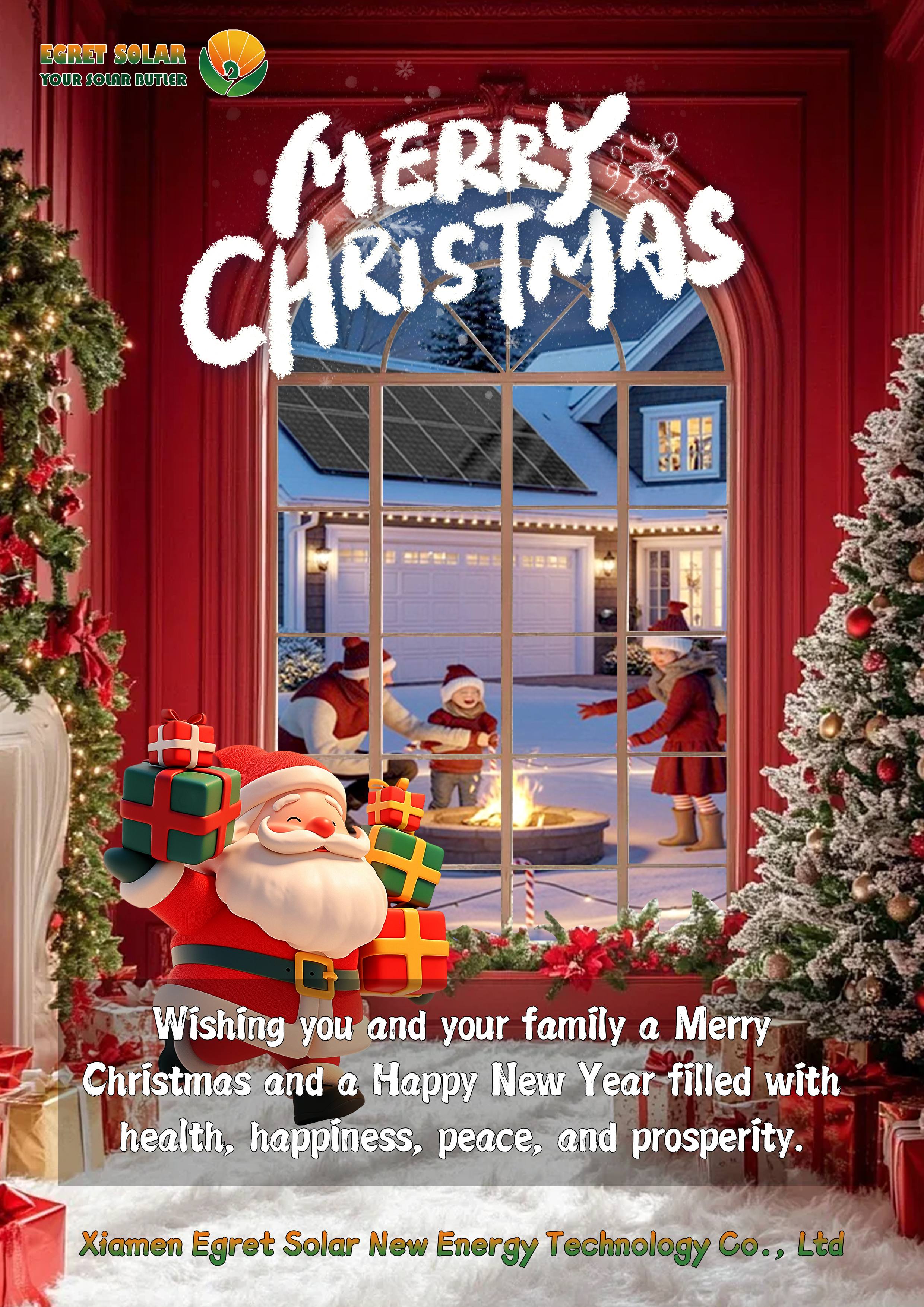 ສຸກສັນວັນຄຣິສມາດ! ໃນຊ່ວງເວລາທີ່ມີຄວາມສຸກຂອງປີນີ້, ພວກເຮົາທຸກຄົນທີ່ Egret Solar ຂໍສະແດງຄວາມຂອບໃຈຢ່າງຈິງໃຈຂອງພວກເຮົາສໍາລັບຄວາມໄວ້ວາງໃຈແລະການຮ່ວມມືຂອງທ່ານ. ການຊ່ວຍເຫຼືອຂອງທ່ານເປັນແຮງຂັບເຄື່ອນທາງຫລັງຂອງພາລະກິດຂອງພວກເຮົາເພື່ອສະຫນອງການແກ້ໄຂພະລັງງານສີຂຽວ.